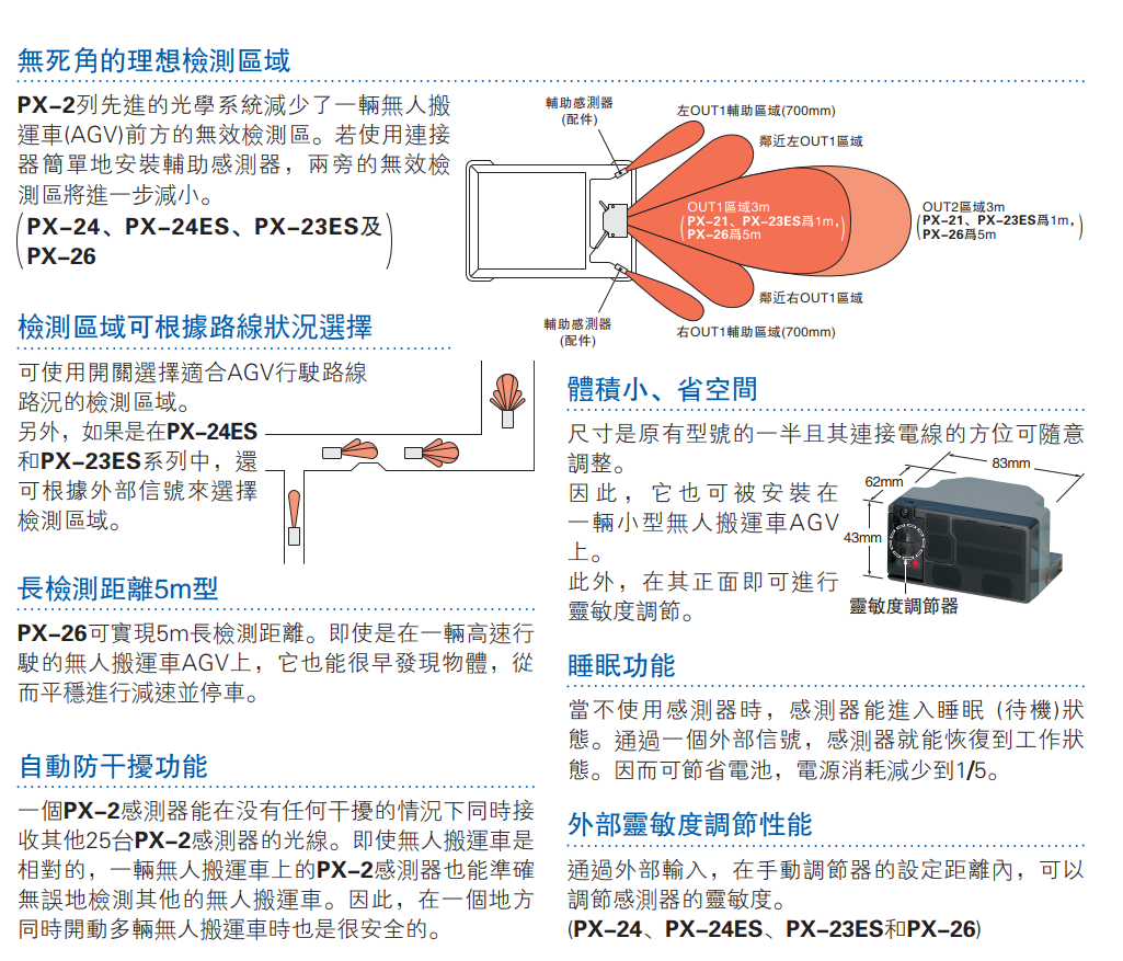 障礙物檢測感測器 PX-22 系列